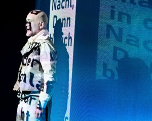 Karten„Ein starker Start in die Saison. Das Theater Ansbach bringt Heinrich Heines Großgedicht „Deutschland. Ein Wintermärchen“ im Kleinen Haus auf die Bühne: bildkräftig, musikgesättigt, bitter, komisch, ernst, gespickt mit pfeilgeraden Querverweisen in die Gegenwart. Die letzten Verse zielen nach Ansbach, Richtung Stadtverwaltung. 180 Jahre ist Heinrich Heines satirisches Vers-Manifest alt und immer noch steckt viel Gegenwart darin. (…)“ FLZ, 14.10.2024