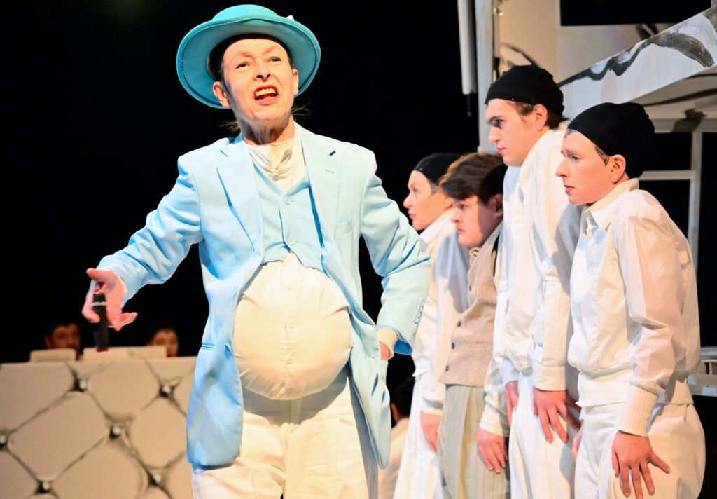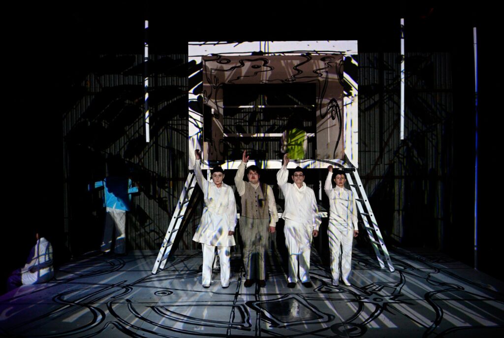 Robert Arnold (…) hat Hans Falladas Bestsellerroman von 1932 in einer gekürzten Fassung mit Musik auf die Bühne gebracht. (…) Erwin Bootz, der Pianist der Comedian Harmonists, hatte seinerzeit die Nummern komponiert. (…) . Am Theater Ansbach wird auch Musik gemacht, aber anders, was heißt: nach Art des Hauses, also mit einem großen Faible fürs Groteske. (…) . Die Bewegungen sind wie abgezirkelt choreografiert und überzeichnet, (…) Nebenfiguren werden zu Karikaturen. Hier sprechen sie auch chorisch wie in einer antiken Tragödie. Nur sind es nicht Götter, die Johannes Pinneberg und seine schwangere Frau Emma verfolgen. Die entfesselten Kräfte des Marktes drücken sie nieder.“ FLZ, 23.2.2026
