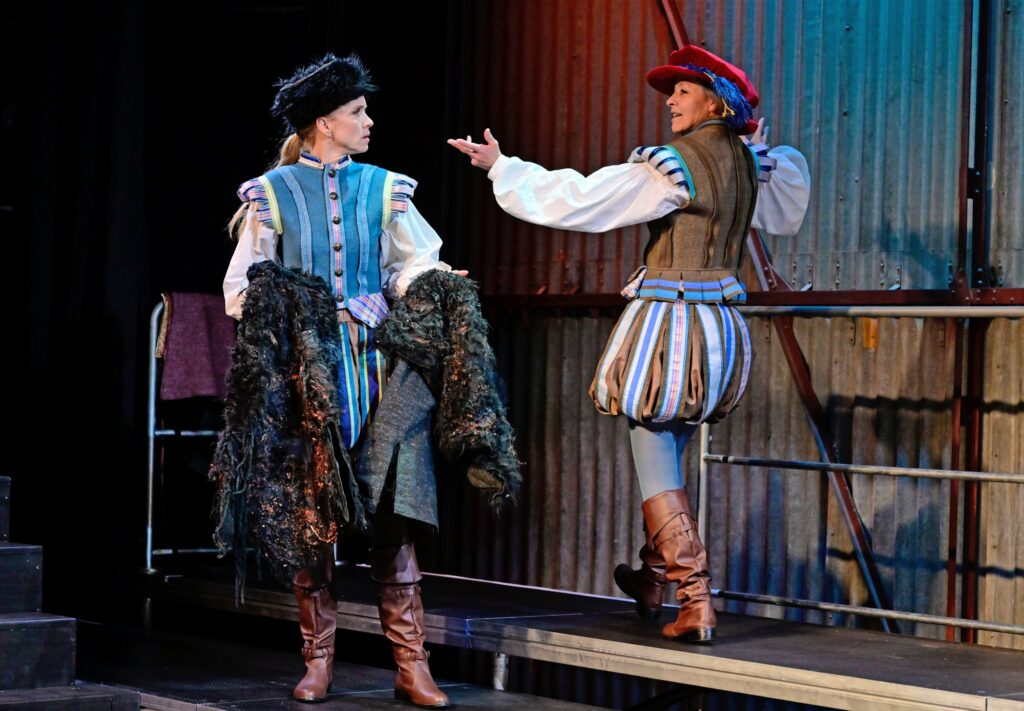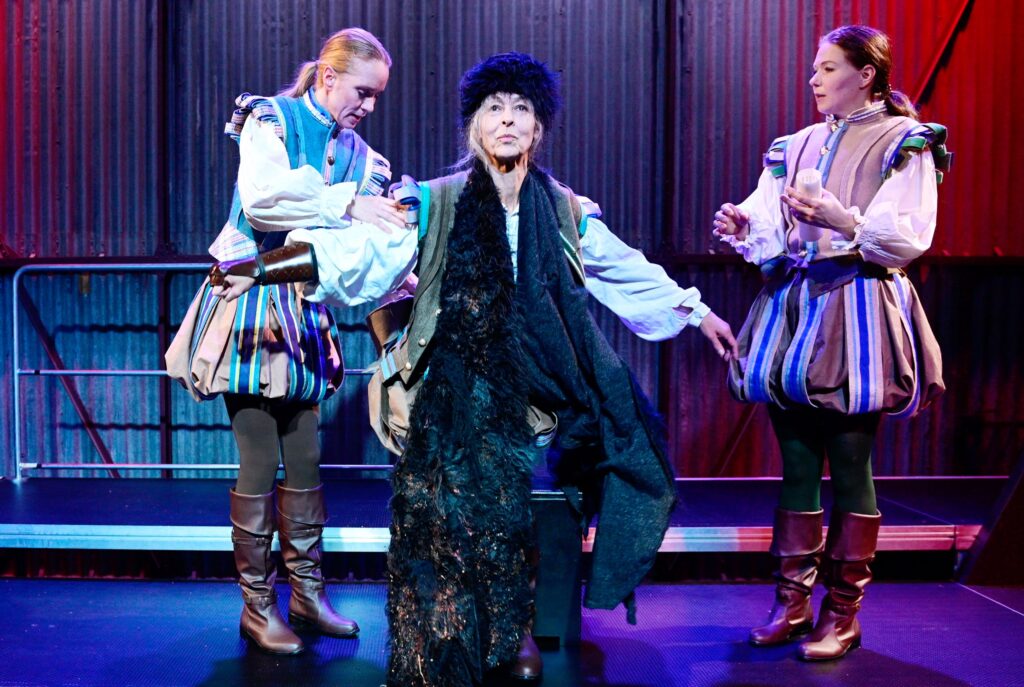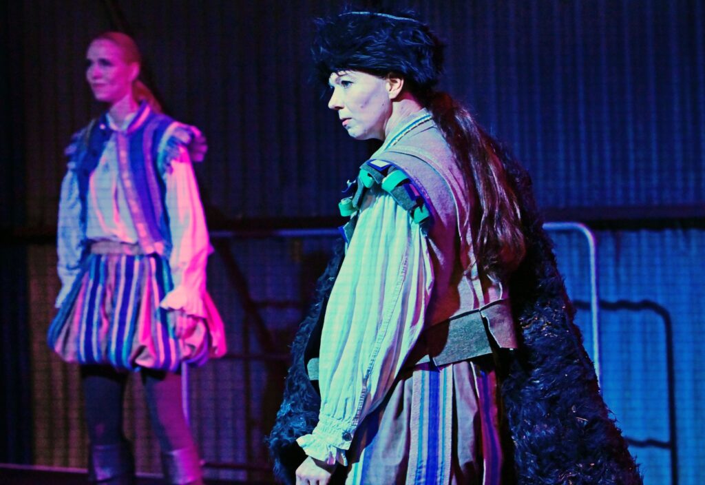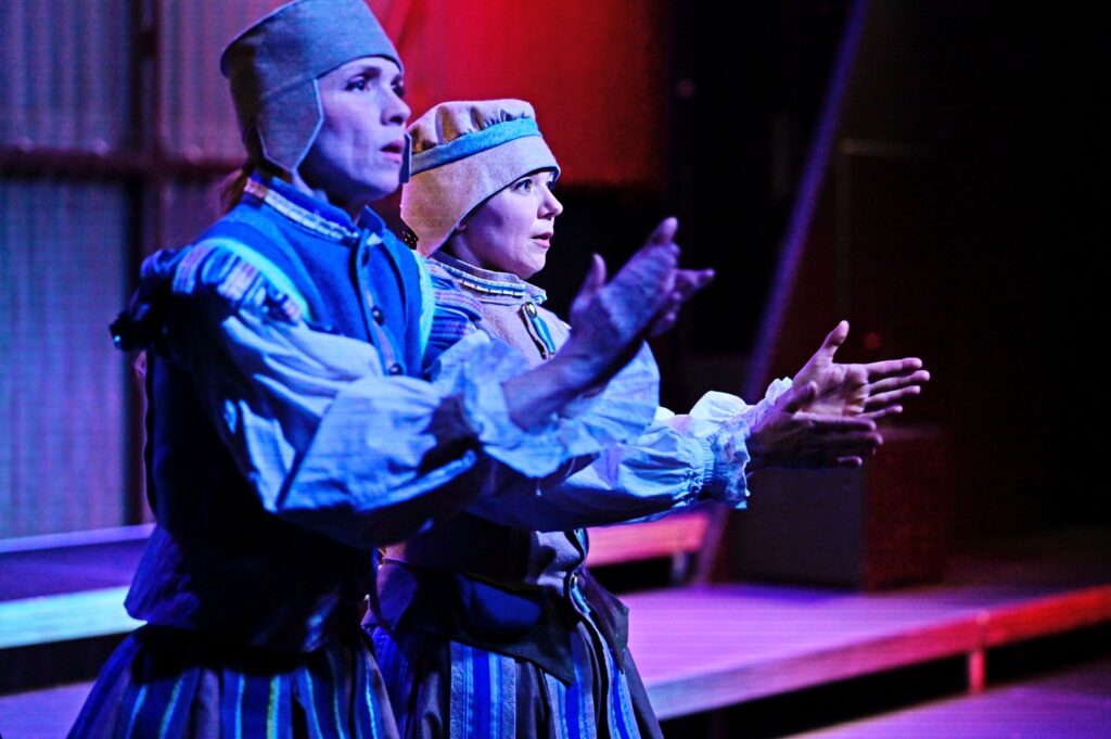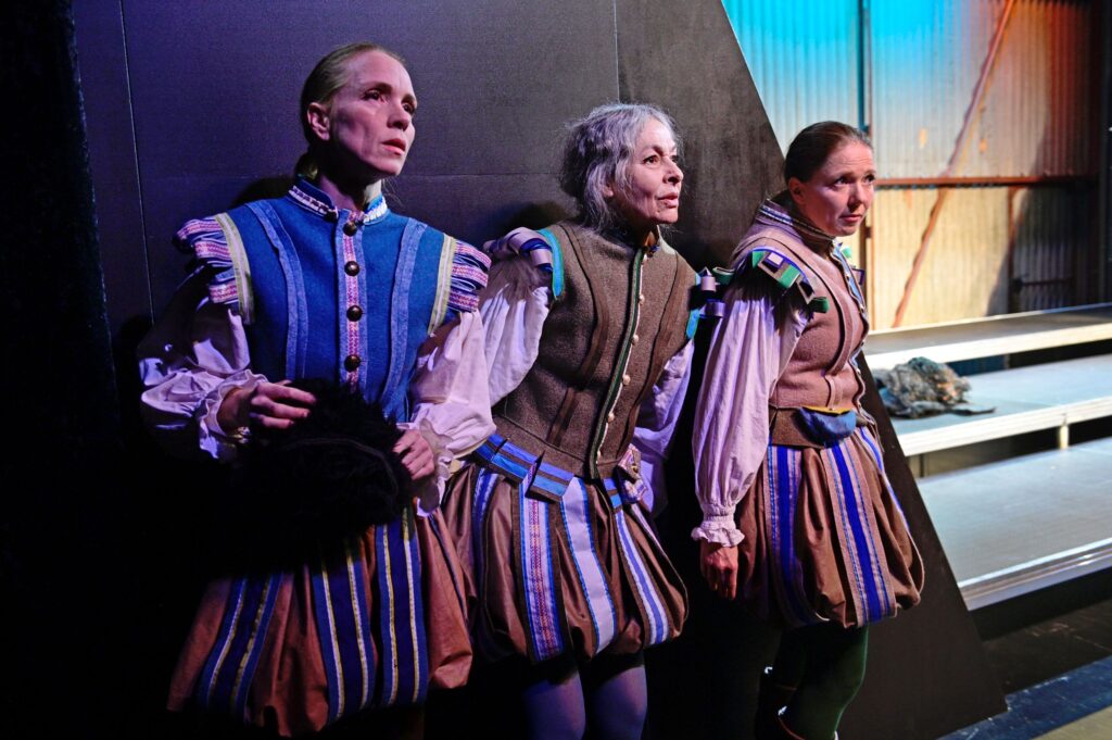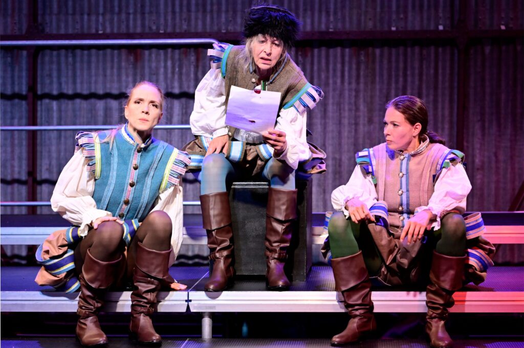 „Britta Kristina Schreiber inszeniert „Michael Kohlhaas“ am Theater Ansbach als postdramatisches Sprech-Terzett mit Ironie und Tiefgang. (…) So lassen Nicole Schneider, Undine Schmiedl und Sophie Weikert den Kohlhaas als imaginäre Figur auf der inneren Bühne eines jeden, einer jeden im Raum entstehen. Das funktioniert sehr gut, nicht zuletzt, weil die drei sich Figuren und Textteile mit choreographischer Präzision übergeben und das Kleist’sche Personal mit kräftigen Strichen umreißen. Fast könnte man die drei für Bänkelsänger halten, die eine gar schröckliche Moritat zum Besten geben. (…) Astrid Nathos gewitzt historisierende Renaissance-Männermode tut das Ihrige, um diesen Eindruck zu verstärken. Die drei Frauen tragen Wams und Heerpauken als Grundkleidung. Kostümteile wie Schürze oder Umhang signalisieren die Figurenwechsel. (…) Leichtfüßig, komödiantisch, ironisch wirkt das, so wie die Hintergrundmusik, ein Oldie-Filmmusik-Mix. Das schließt nicht aus, dass sich nach und nach das Geschehen eindunkelt und ernster wird.“ FLZ, 21.10.2025
